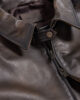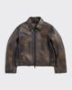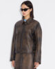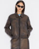 The Cia Leather jacket is a boxy, fitted silhouette with a slightly faded finish. It has a classic collar, throat latch and side slit pockets. Style with the matching Cia Leather skirt.