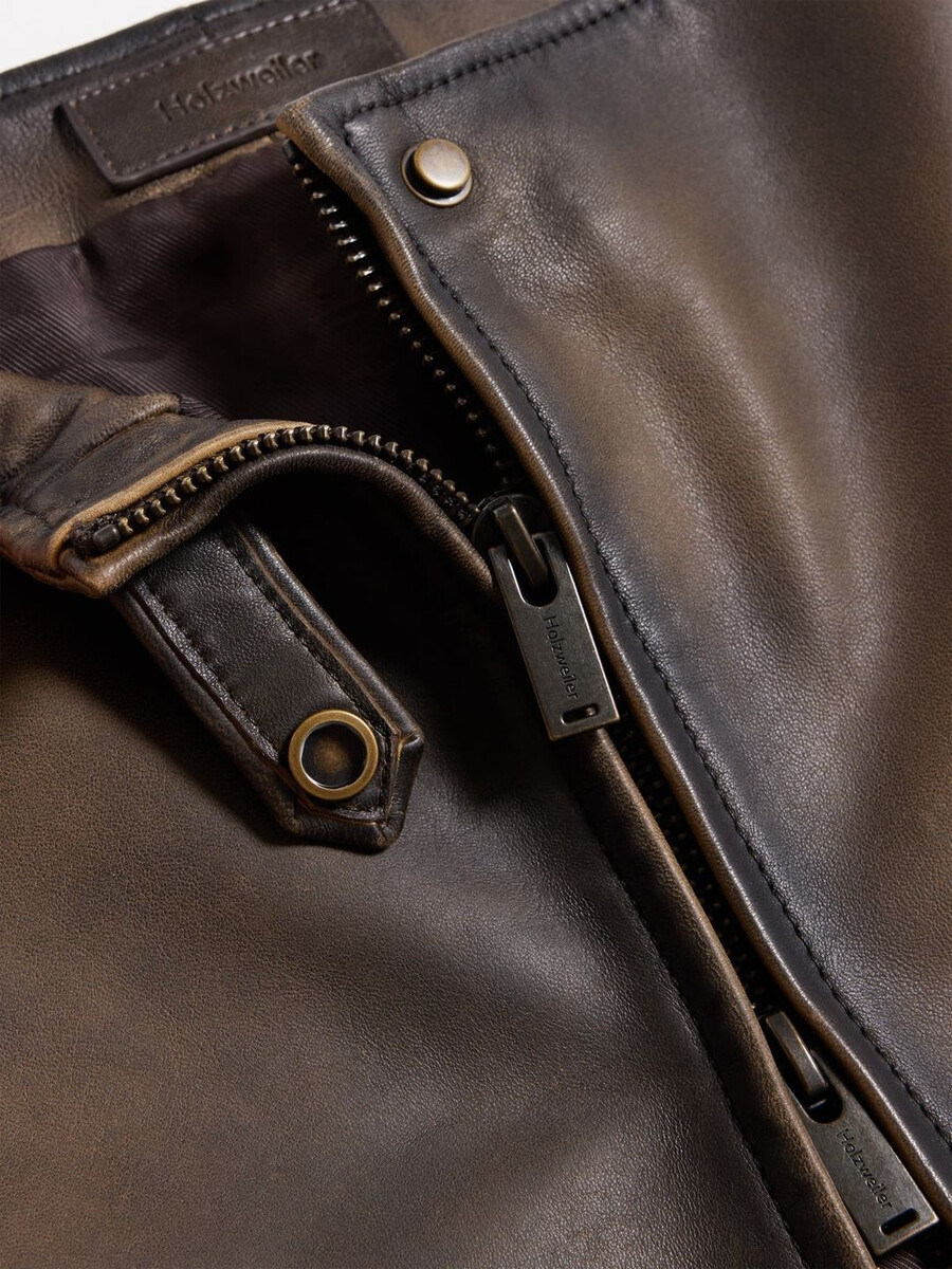 Made from leather with a faded finish, the Cia Leather skirt sits at a mid-rise waist and has a mini-length hem. Securing with a front zip fastening, it has snap fastenings at the waist and can be styled with the matching Cia leather jacket.