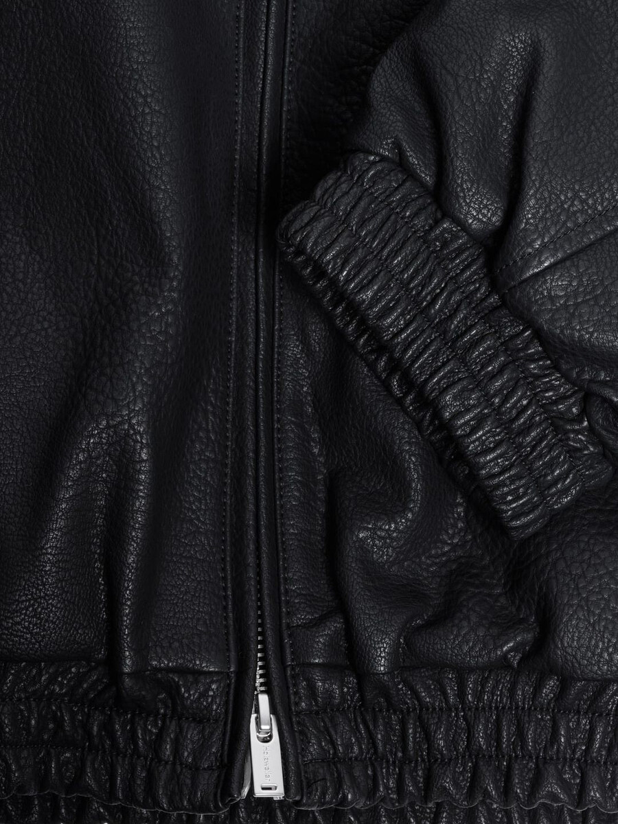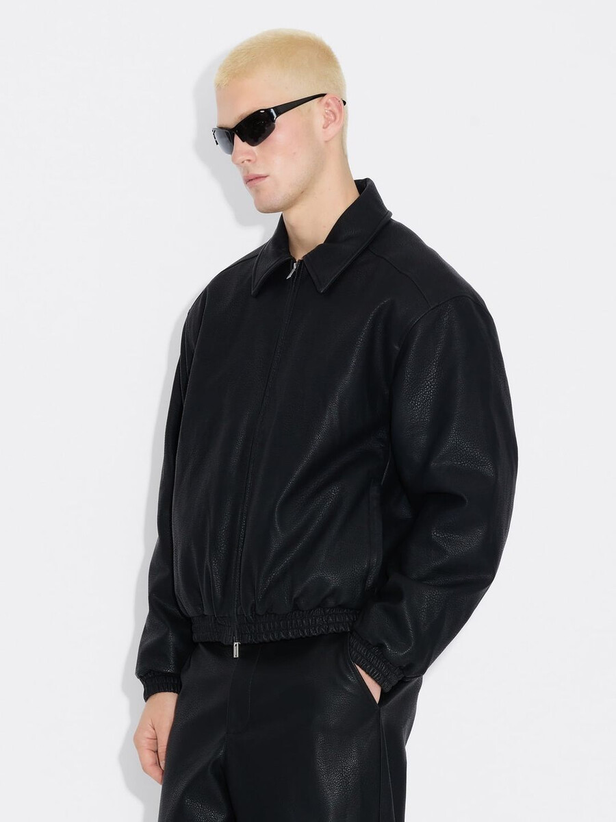 The Claes faux leather jacket is a bomber-style silhouette with a relaxed fit. It features an elasticated hem and cuffs, a front zip fastening, classic collar and side slit pockets. Style with the matching Claes faux leather trousers.