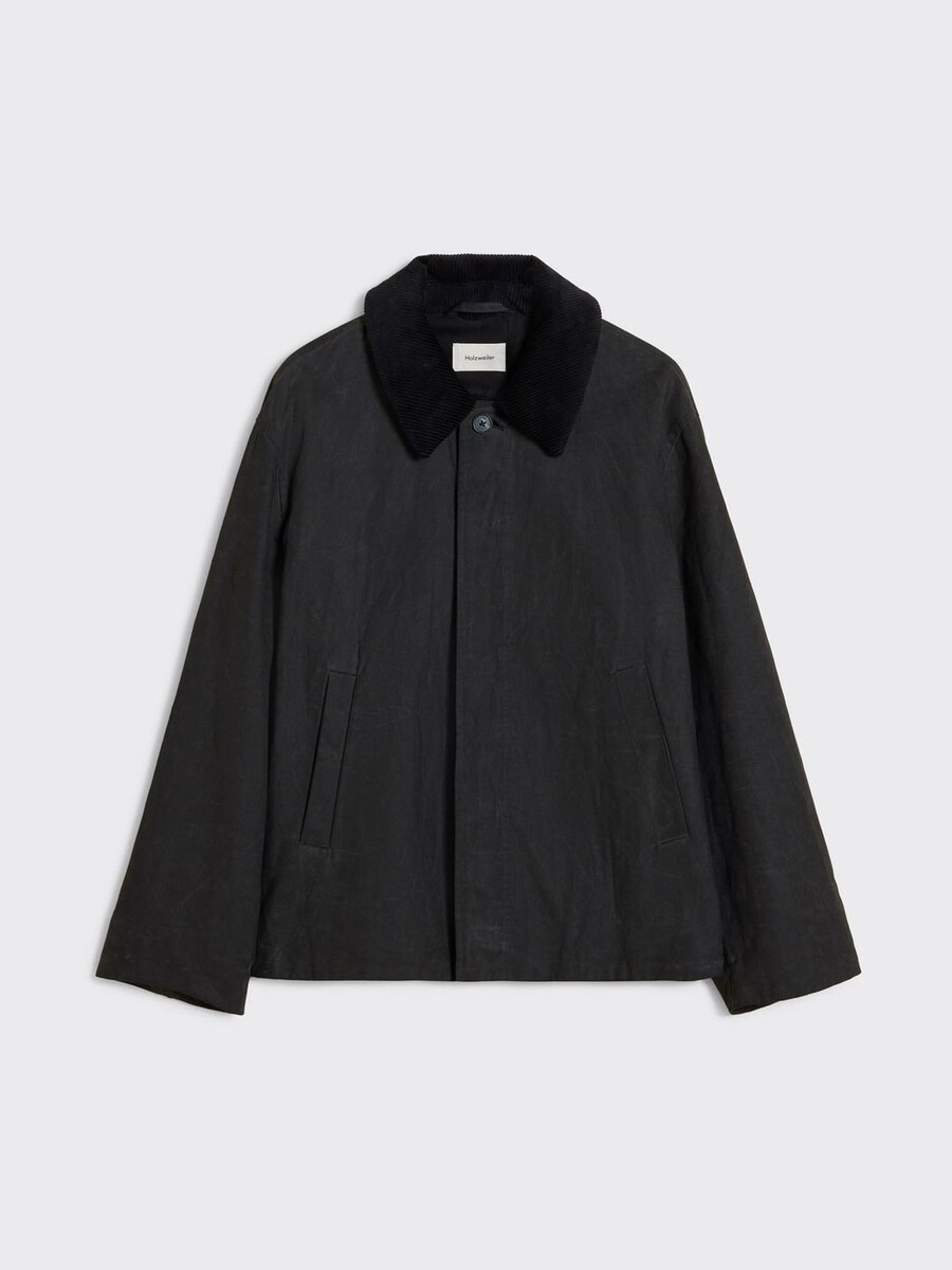 Our Danni Short jacket is detailed with a waxed finish that ensures protection from the elements. It features side pockets and removable collar for versatile styling.