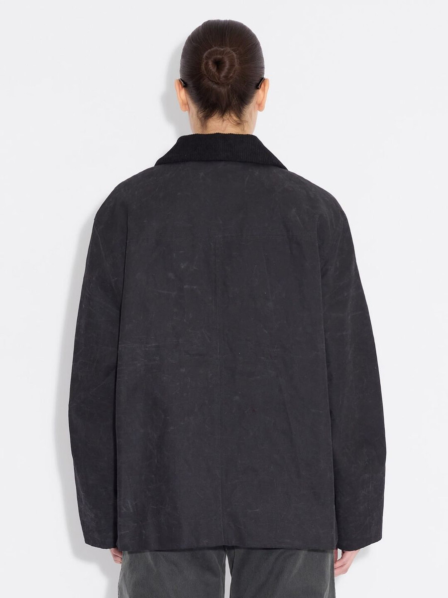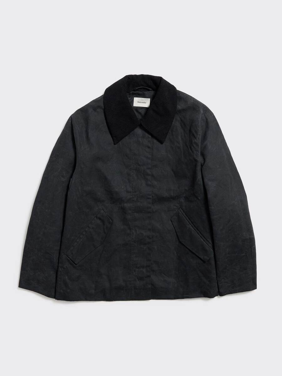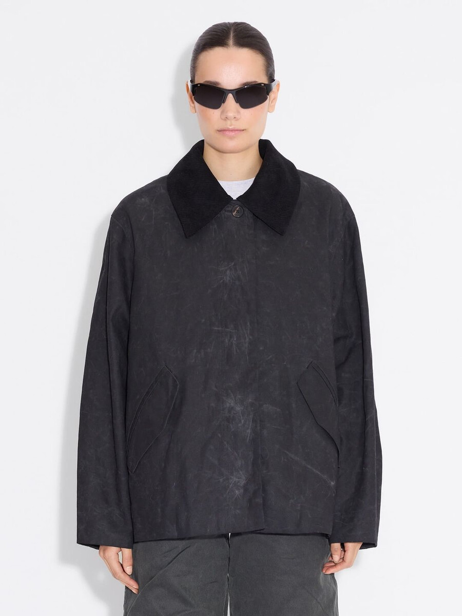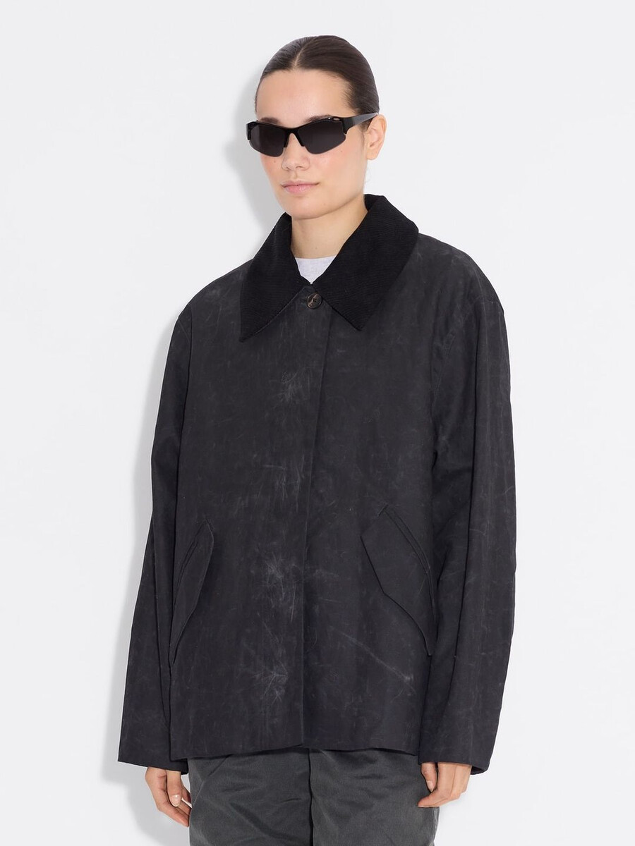 Our Diana Short jacket is made from a durable fabric with a waxed finish that ensures water resistance. It has a removable corduroy collar, concealed front button fastenings and side slit pockets.