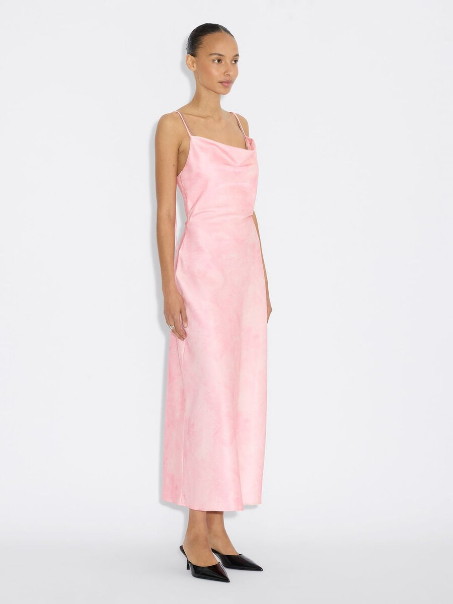 For the new season, the Eila Midi Dress is reimagined with digitally-printed, artistic patterns which play with textural fur in refreshing colourways. This do-it-all slip dress is defined by a slinky texture, waterfall draping and easily adjustable spaghetti straps. The slim silhouette, gently fitted waist and bias cut makes Eila a flattering option.