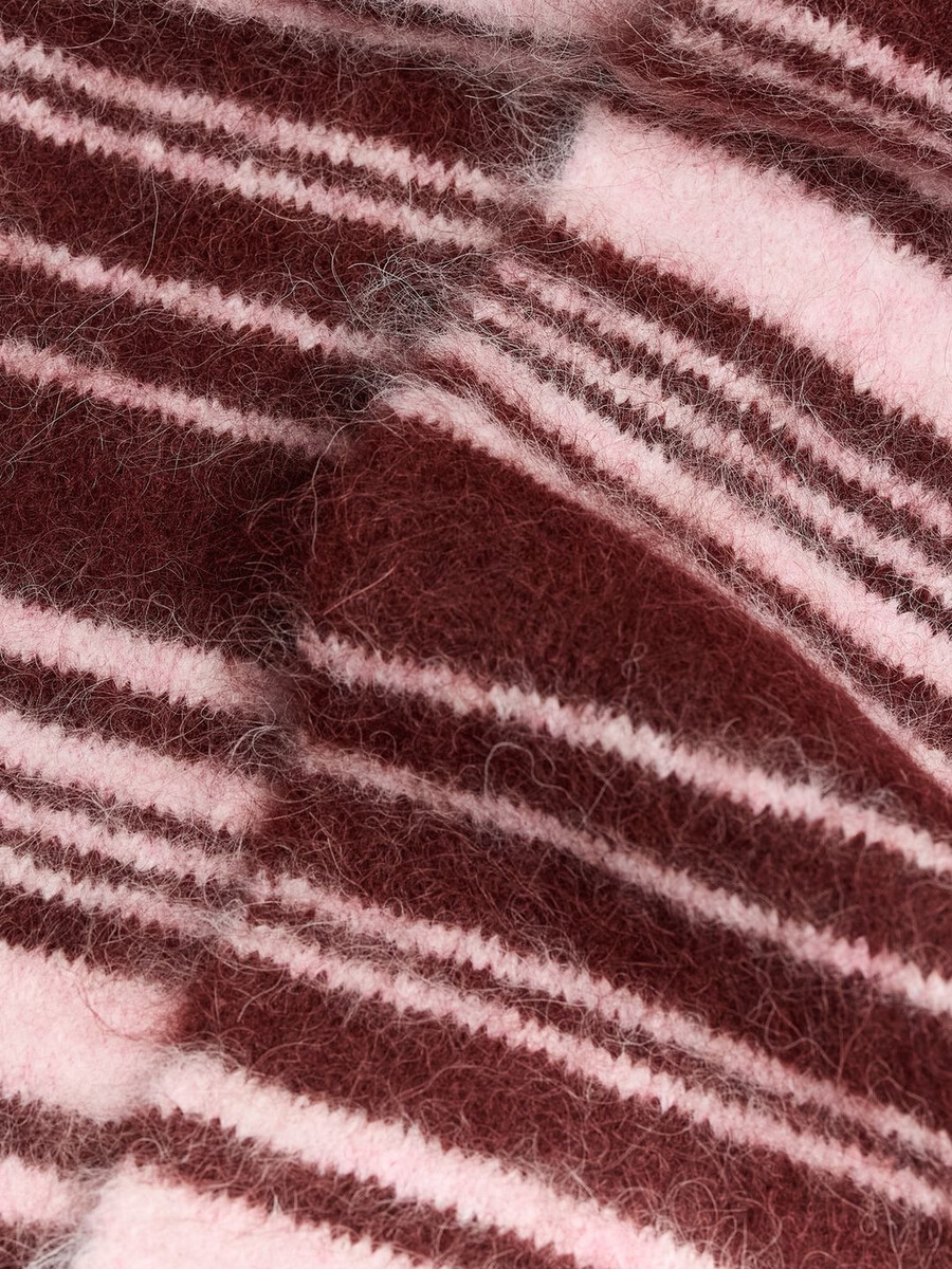 Fluffy by name and nature, this scarf is made from a tactile alpaca-blend knit with added stretch for ultimate comfort. Adding a pop of colour to any gloomy day, the Fluffy Alpaca Stripe Scarf has a classic pattern in a rich hue to keep your neck warm in joyful style. Finished with subtle logo detailing and ribbed cuffs. Pair with the matching beanie and mittens for maximum happiness, softness and warmth.