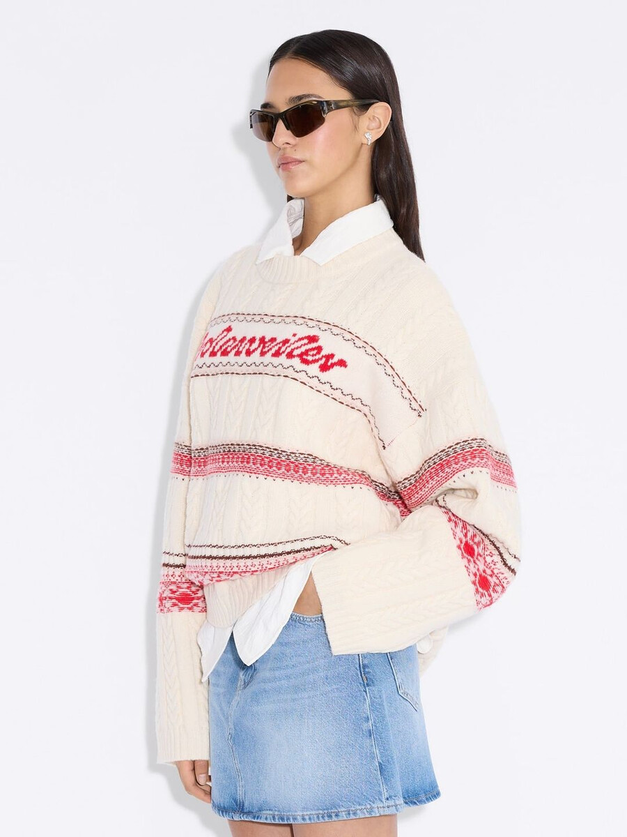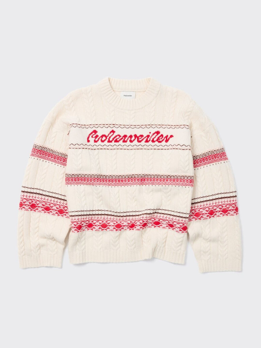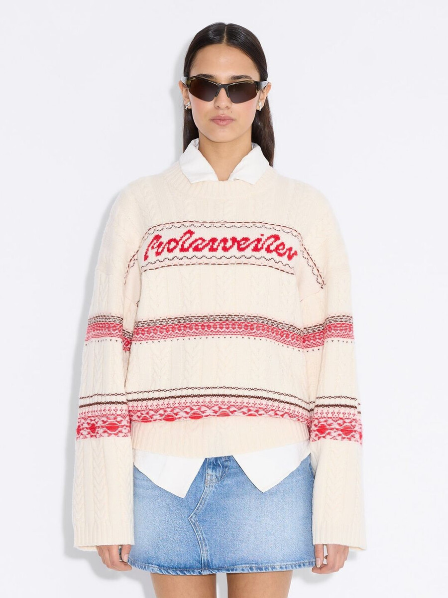 The Holzweiler Logo sweater is made from a cable-knit derived from a soft blend of cotton, cashmere and wool. As well as our logo on the chest, the crew neck design is detailed with horizontal stripes and ribbed edges.