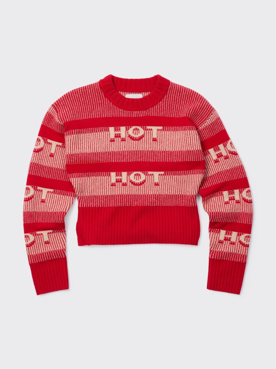 The Hot Hopped sweater is made from a pure wool knit with intarsia detailing. A regular-fit style with a fitted high waistband, it has a crew neck and insulating ribbed edges.