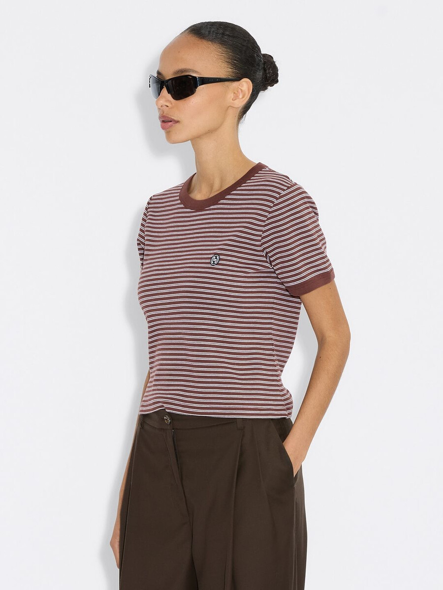 No everyday wardrobe is complete without an essential T-shirt. The Kitty Stripe Tee is defined by the timeless print and flattering fitted, cropped silhouette. Kitty is kind to the planet, crafted from high-quality, pure organic cotton.
