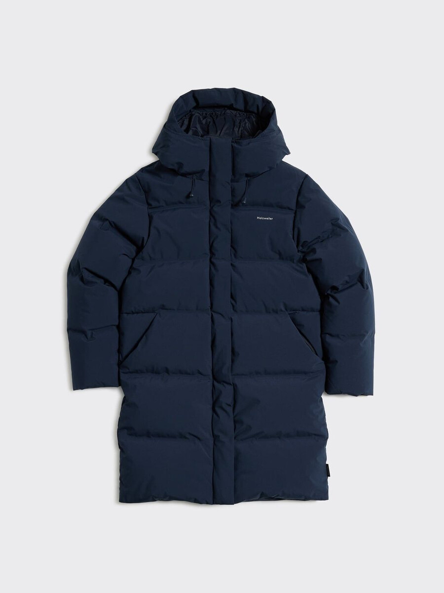 The Loen down jacket is core to our outerwear offering. Quilted and padded with RDS-certifed down, this mid-length design features a hood with a drawstring fastening, fitted cuff sleeves, side slit pockets, and an internal zipped chest pocket.