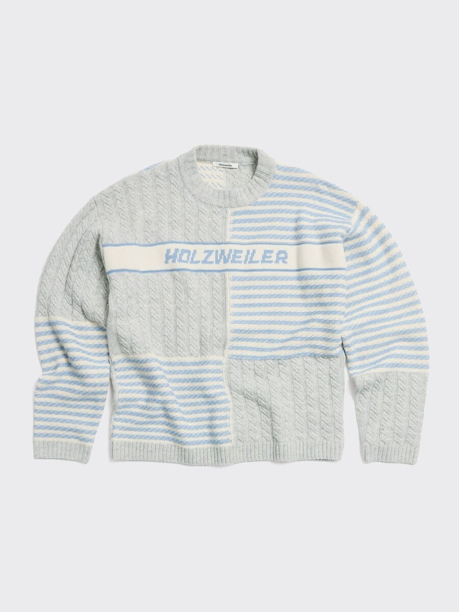 The Logo Wool Cableknit Sweater cuts a relaxed shape in a supersoft pure wool handle which feels luxurious against the skin and promises maximum cosiness. A classic crew neck sweater with a playful Holzweiler twist, this striped, logo go-to is the perfect statement addition to your everyday knitwear repertoire.