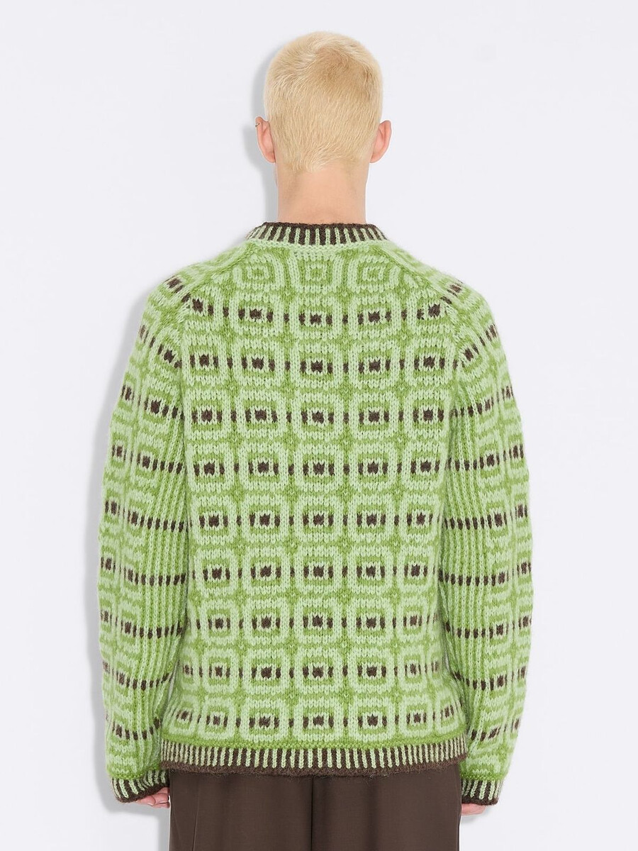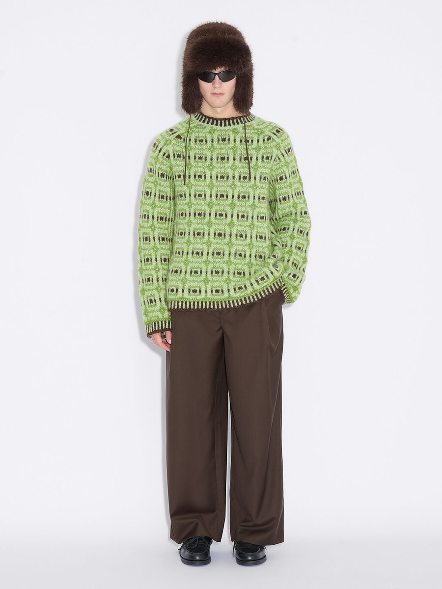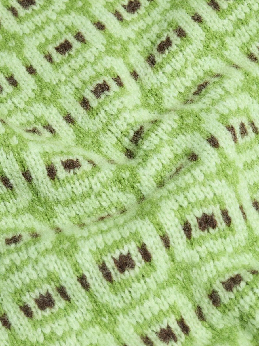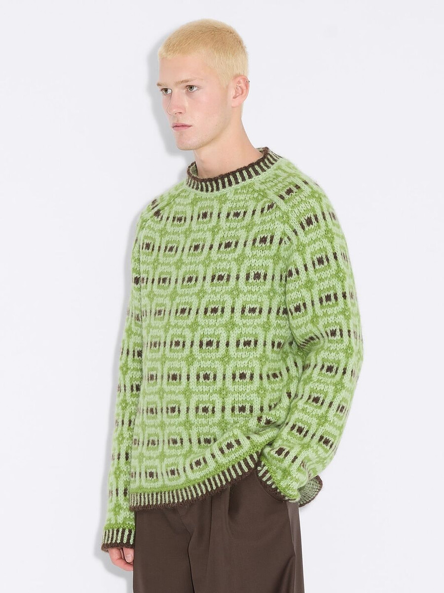 The Norwegian Wool sweater has been designed in collaboration with Skappel. Made from soft Norwegian lambswool with an all-over intarsia pattern, it’s a boxy silhouette with a relaxed fit.