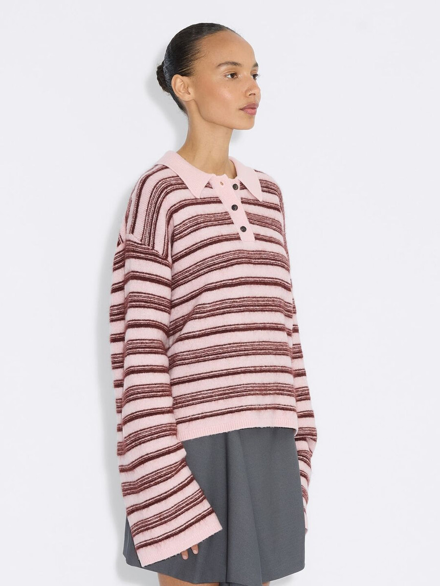 There’s a reason we keep returning to Olivia time after time; our most desired polo knit seamlessly transcends trends and seasons. The Olivia Wool Polo Sweater is loved for interweaving versatility, stylish ease and comforting softness. This season, the bestseller’s stripes are reimagined in playful pink hues.