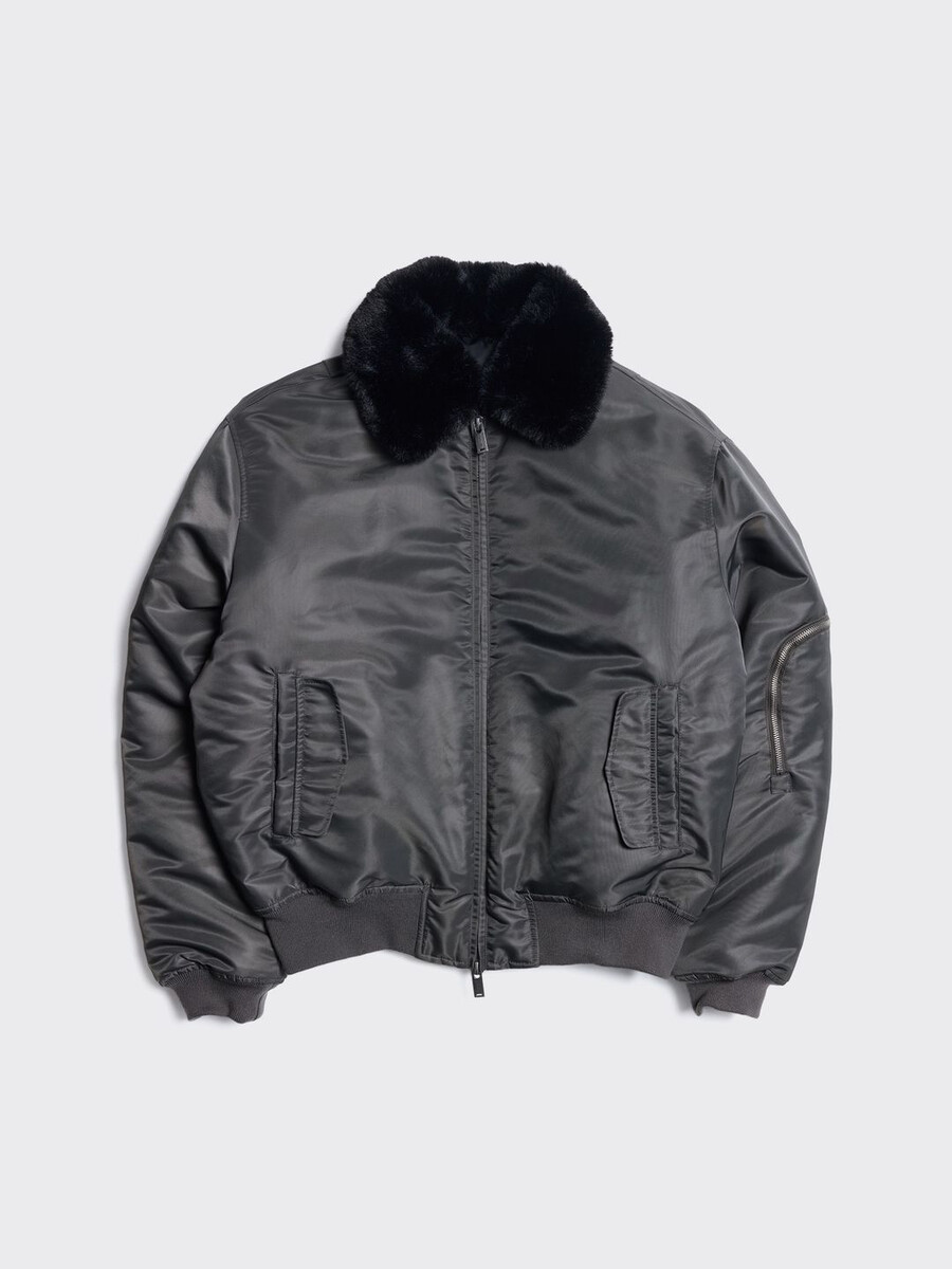 The Reb Aviator jacket is made from a shiny technical fabric that’s offset by a faux fur detachable collar. It has a two-way zipped front, front pockets, a sleeve pocket and ribbed edges.