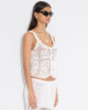 The Rosie Crochet top is made from organic cotton. It’s detailed with intricate custom patterning, and it has concealed button fastenings, a tulip-shaped hem and scalloped edges. Style with the matching Rosie Crochet skirt. This is a handmade design, therefore a limited number is available.