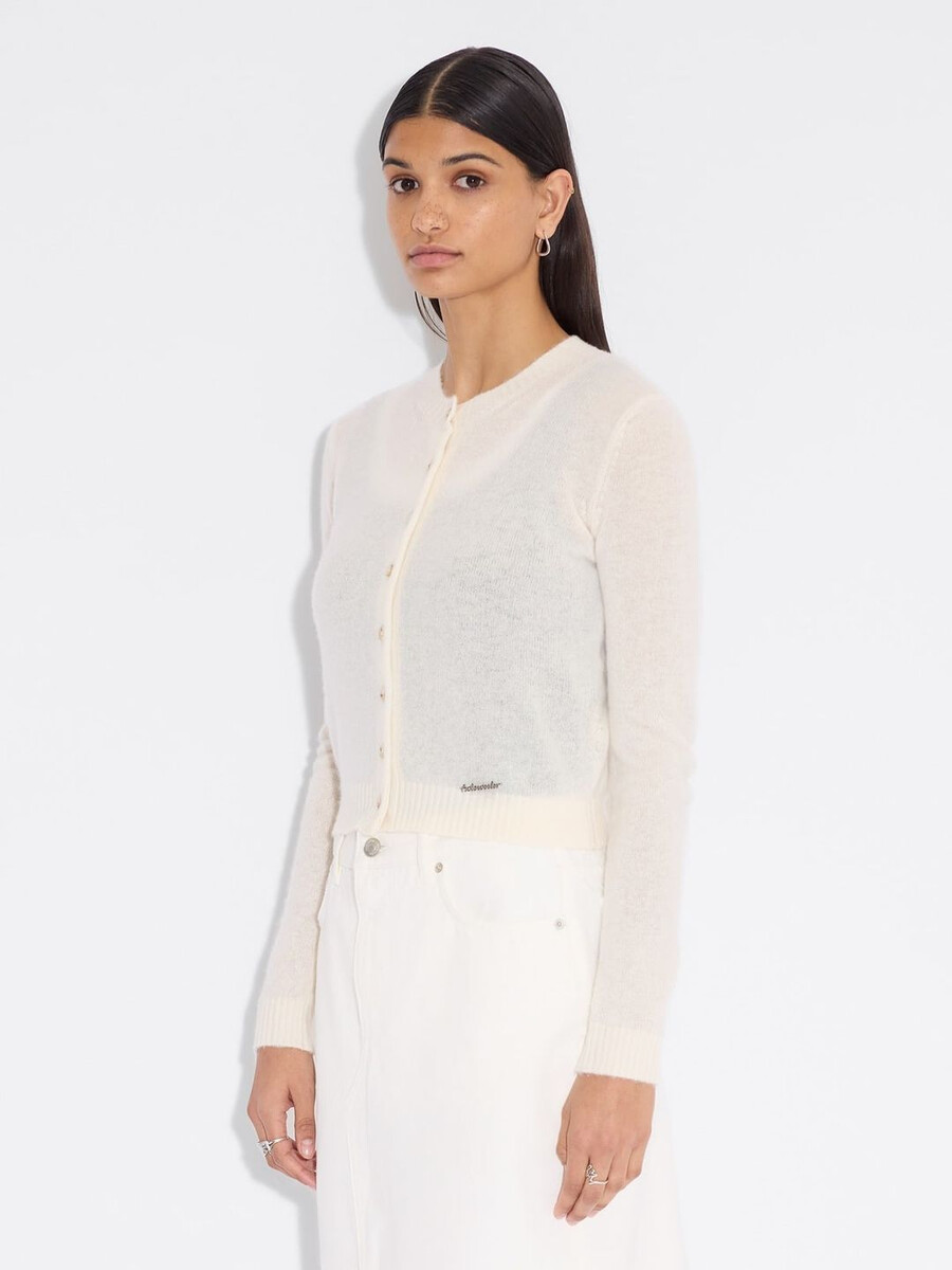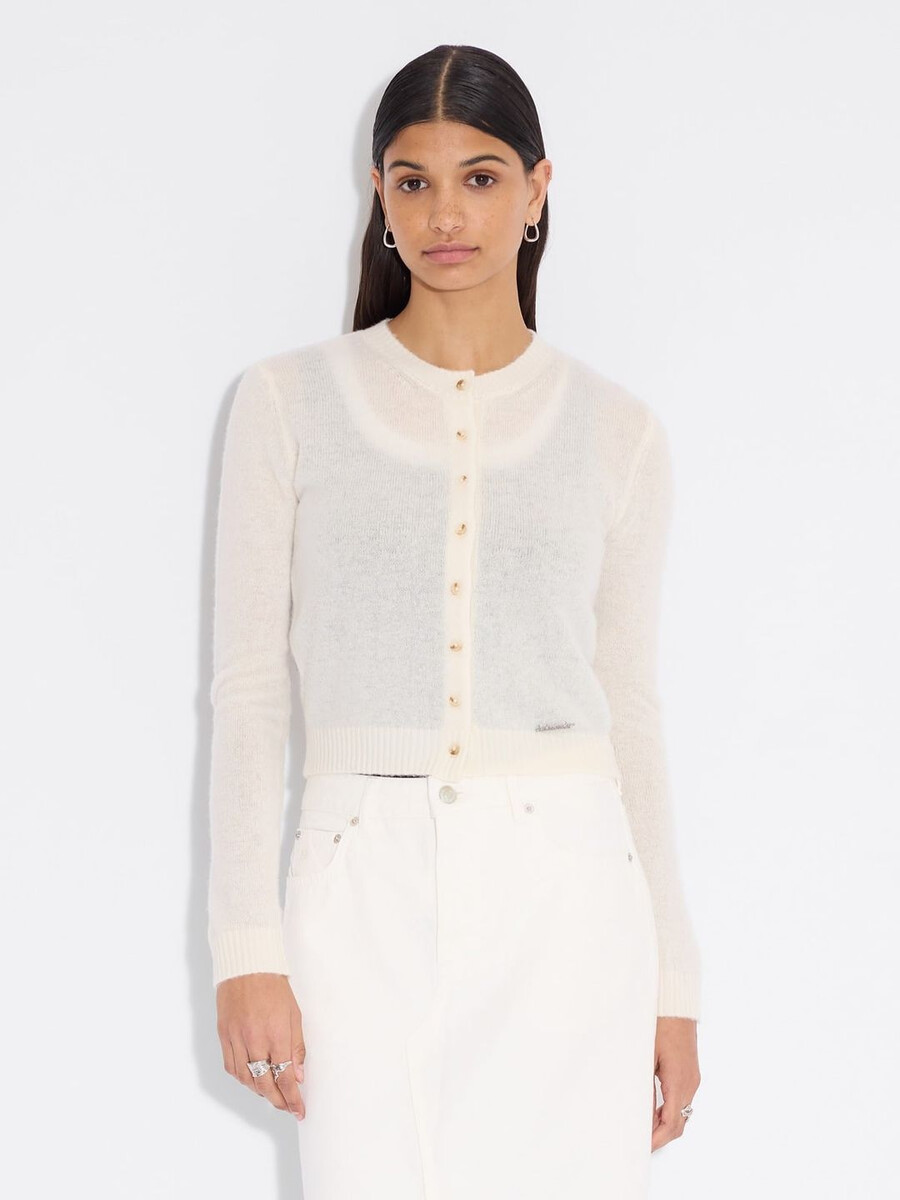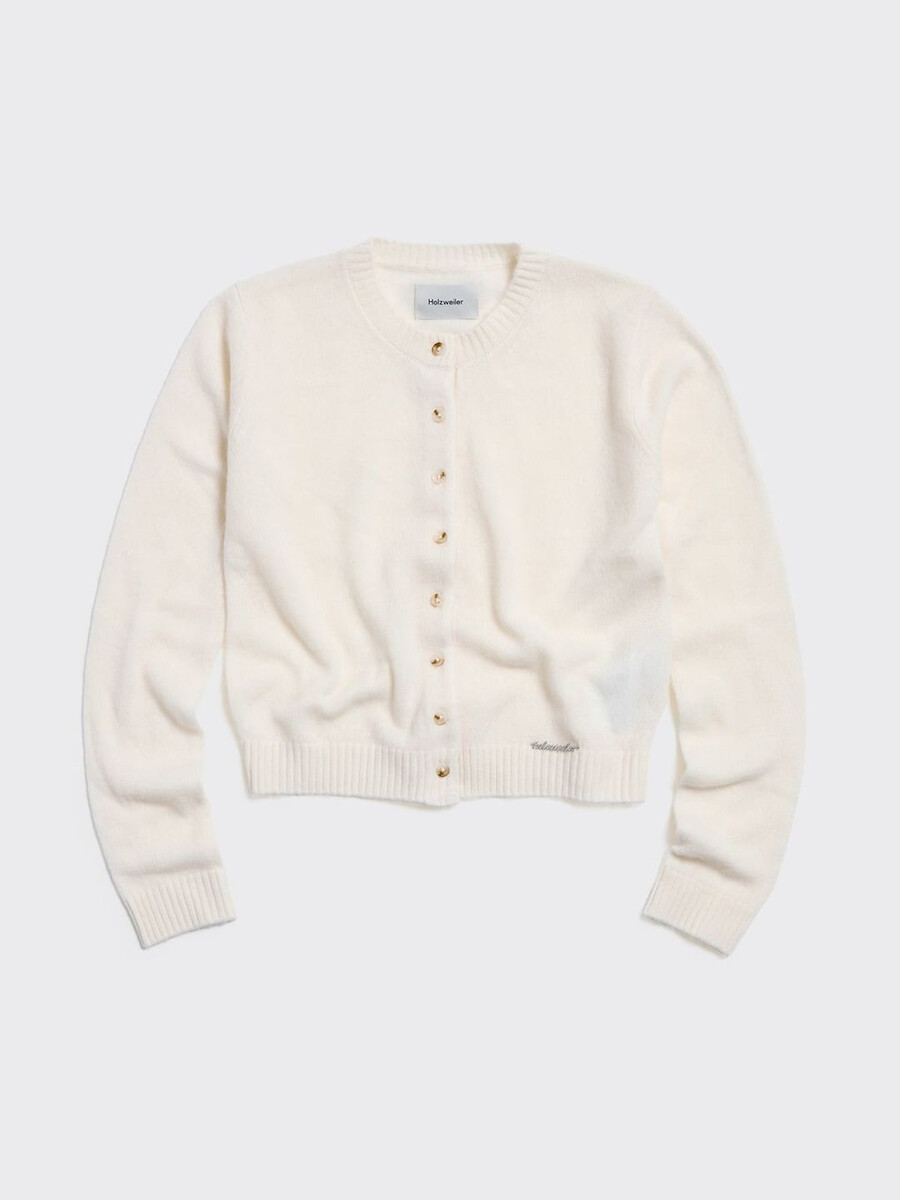Made from a fine knit, the Cashmere cardigan has a round neck, buttoned front and ribbed edges. It’s detailed with a removable metal logo emblem plaque above the waist.