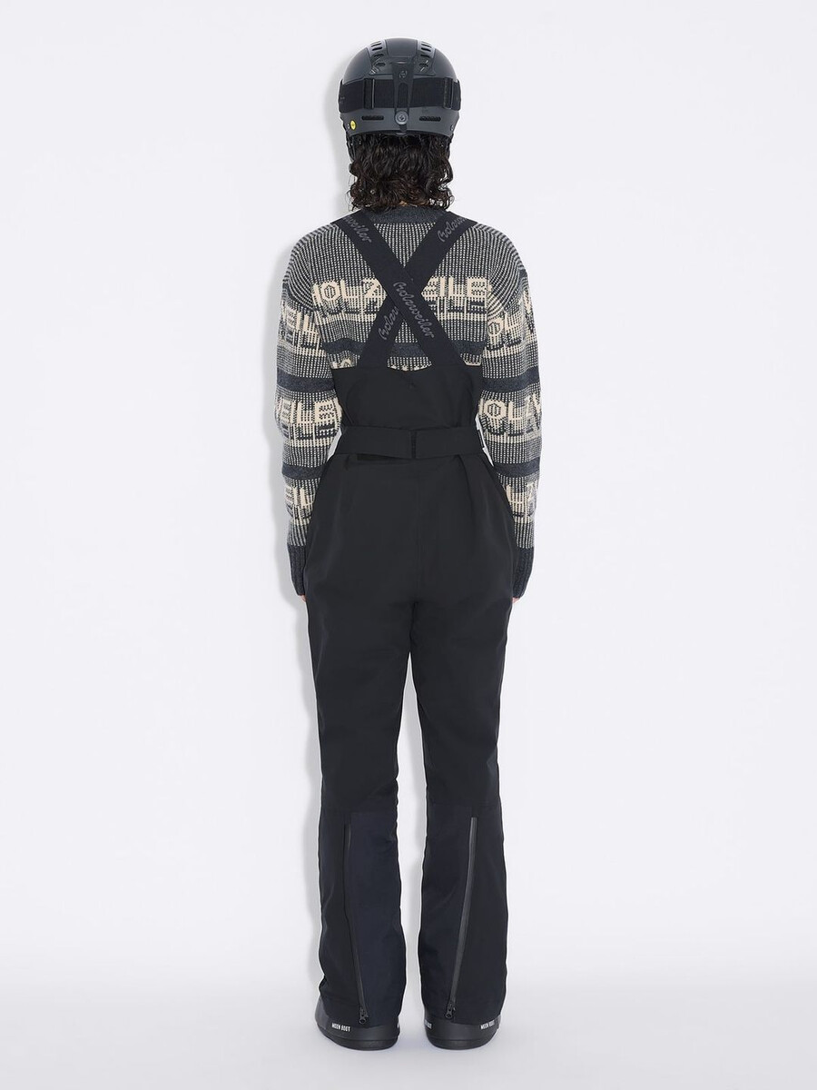Part of our active collection, the Tryvann Bib trousers are a balance of form and function you can rely on while on the slopes. Hanging from adjustable shoulder straps, this outerwear design is made from a padded technical fabric and features zipped pockets, an internal snow gaiter, hooks at the hem to connect to your boots and water repellent zip fastenings.